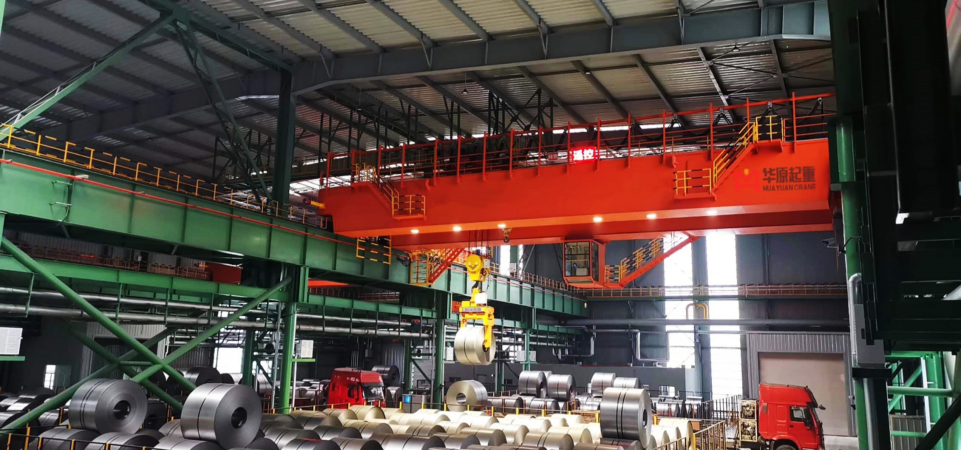 智能橋式起重機(jī)整機(jī)包括小車、橋架、大小車驅(qū)動機(jī)構(gòu)、電氣控制、MES&WMS系統(tǒng)等模塊化設(shè)計,自重輕,體積小,高程度標(biāo)準(zhǔn)化零件設(shè)計,安裝維護(hù)方便簡單,節(jié)省廠房空間結(jié)構(gòu)。整機(jī)工作級別A5-A8可選。配置全新歐式起升機(jī)構(gòu),免維護(hù)高強(qiáng)度鍍鋅鋼絲繩,專用獨立控制系統(tǒng)吊具,標(biāo)配導(dǎo)向輪,配置鋼絲繩防斜拉防脫槽導(dǎo)繩器,起升雙系統(tǒng)上下限位保護(hù),帶起重量限制器或高精度稱重傳感器,80t以下起升升降配置硬鏈接伸縮機(jī)構(gòu),保障定位精度;箱型主、端梁,高強(qiáng)度10.9級連接螺栓,42CrMo車輪,端梁整體鏜孔,全新歐式工藝生產(chǎn)制造;festoon系統(tǒng)扁電纜或拖鏈,運行電機(jī)帶防墜落保護(hù),端梁帶防脫軌、導(dǎo)向輪;起升伺服或變頻控制,運行變頻或伺服控制,運行平穩(wěn)無沖擊,噪音小于75dB,起升定位采用絕對值編碼器,大小車運行定位采用編碼尺、激光測距等,定位進(jìn)度可達(dá)到±5mm,MES&WMS系統(tǒng)控制,全程智能無人化工作,可通過監(jiān)控系統(tǒng)觀察監(jiān)測軌跡、節(jié)拍、物料情況;通過物料編碼可記錄物料路徑、存放使用情況,通過軟件系統(tǒng)邏輯設(shè)定,合理安排所有流程觸發(fā)條件,達(dá)到高效率;可通過視覺掃描、掃碼、自動定位等方式識別物料形狀或位置完成抓取或卸料工作;可應(yīng)用于切割下料鋼板、成品搬運、智能化散料上料系統(tǒng)、卷料搬運、鋁板搬運、型鋼、細(xì)長管料搬運等工作場景。